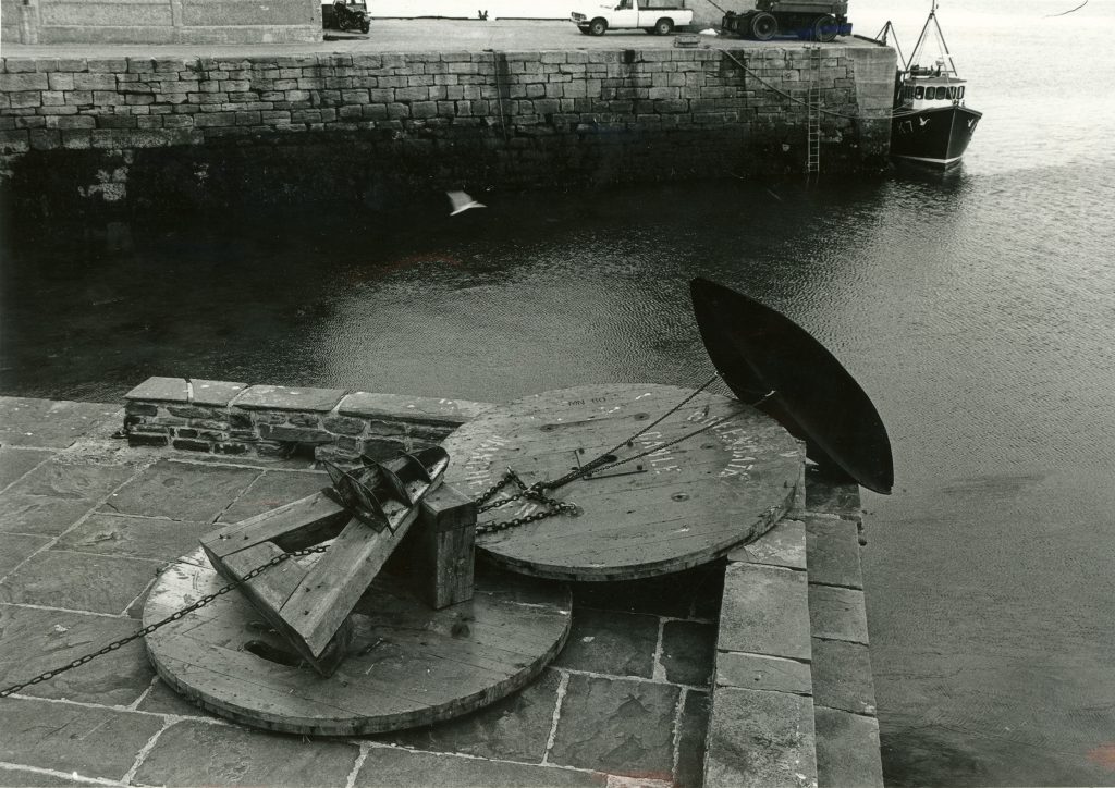In 1979 I moved, with the painter Joyce Cairns, to the former fishing village of Fittie bounded to the east by the sea, to the south by the mouth of the River Dee, and west by the harbour. For each of us this slowly permeated every aspect of our work as artists. For me this was reinforced by the dawning of the Scottish Sculpture Workshop which, for the first time, allowed me to work on a large scale, developing a vocabulary of basic structures to which I constantly return. These include a geometry of navigation signs that surrounded us or the canoe-like pod as a boat metaphor.