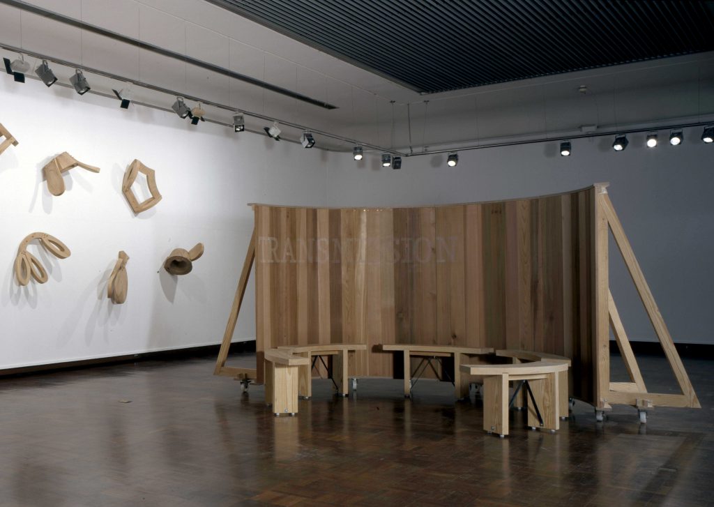 This was a key exhibition for me as a young artist, not because it separated me from my peer group, or that it would tour abroad, but rather it gave me, for the first time, the opportunity to show a group of freestanding sculptures. During the year of the exhibition my visual vocabulary grew, as did my attitude to materiality. From the relative precision of Rainbow Table a growing reliance on ‘found timber’ as seen through Squeezed Table to Table for Fingal.