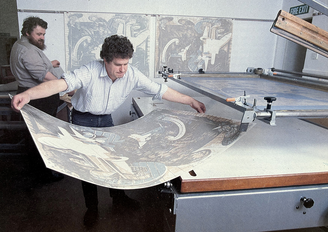 With Ian Howard, printing the second colour on Palindrome for his exhibition, Ian Howard, Paintings, Prints and Related Works; Third Eye Centre and Peacock Printmakers.