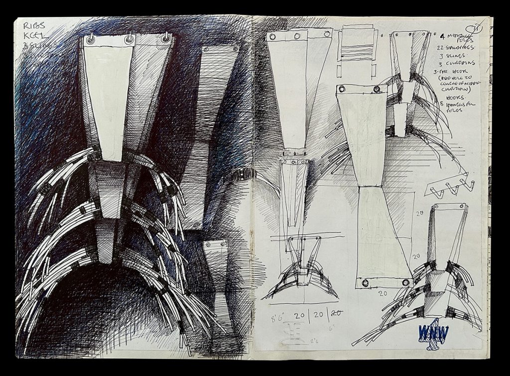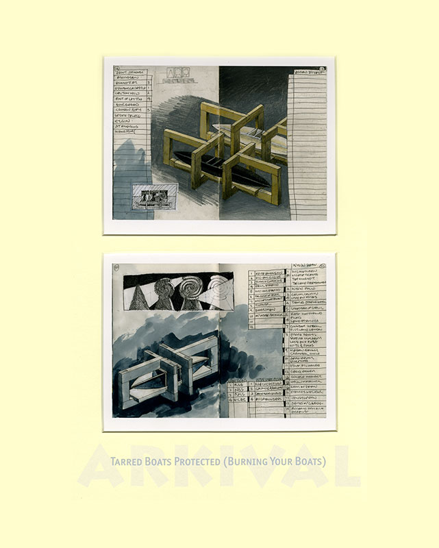 “The way that the work developed, filters through these books in an extended period of visualisation… many pieces are made, then presented, exhibited, and appraised through drawing… Often works will go through several stages of making and being exhibited and the books are again used to guide these redrafts. I will rarely exhibit a piece twice in the same form, but rather allow it to continue to evolve after its initial exhibition… They may run through anything up to ten years being refigured, re-exhibited, redrawn.”