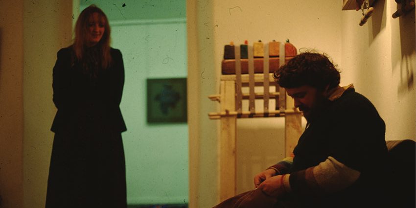 With Joyce Cairns, installing work at the Compass Gallery, Glasgow.